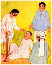 and got up. The father of the boy fell at the feet of Bapa. Bapa said, "Thank