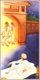 resting there. Suddenly he was awake at midnight. He saw two women in white attire with the pots of water in their heads. When they came near, the gate opened itself.